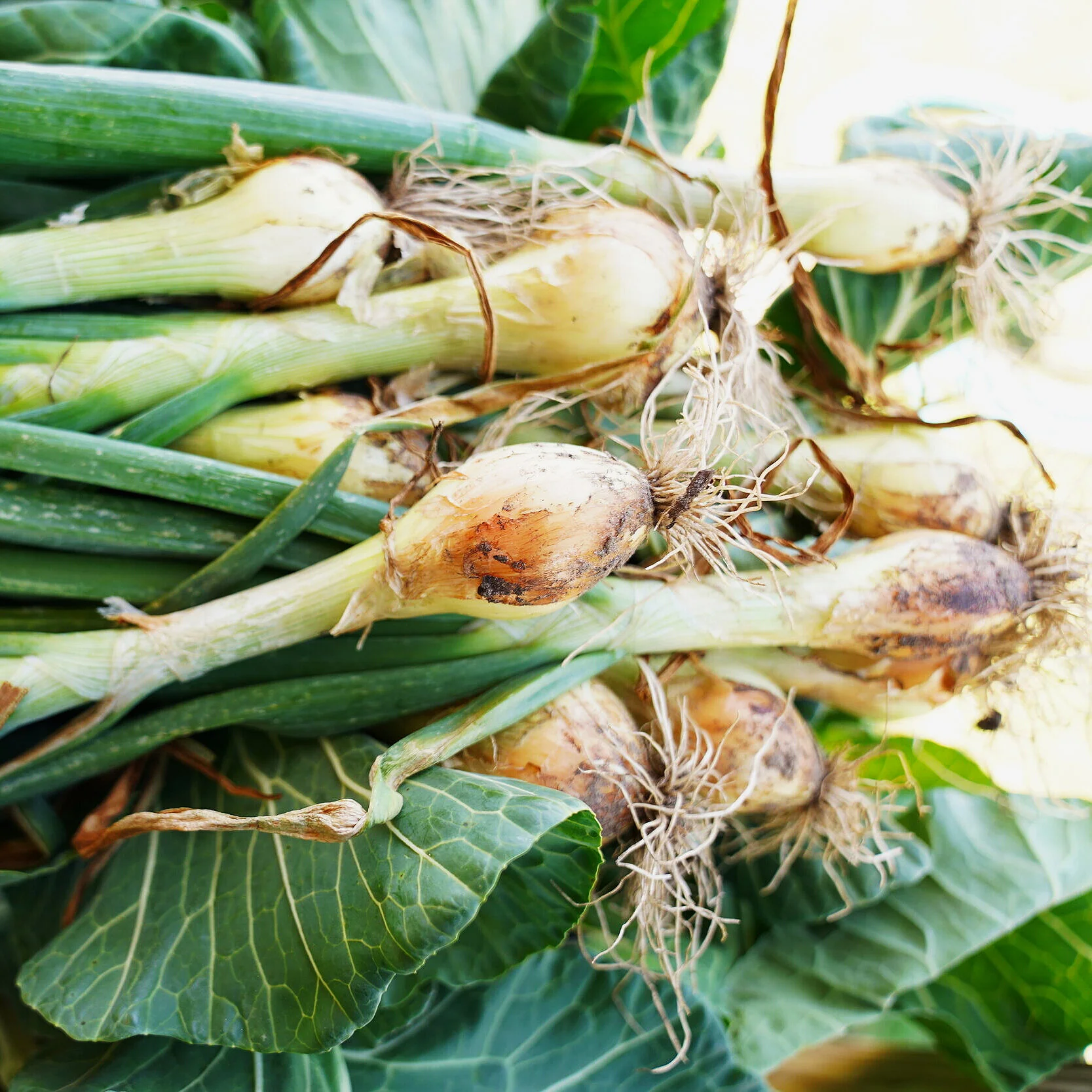 There are many ways you can store onions, as well. You can braid them together and hang them, or store them in hanging mesh bags. Whichever method works best for you, just know that to store them for a long time, they need to be in a cool, well-ventilated place out of direct sunlight. When you separate them for storage, be sure to organize them and bunch together the ones you want to use up first! Rule of thumb: use any onions that were flowering first, then use the ones that have the thickest necks!