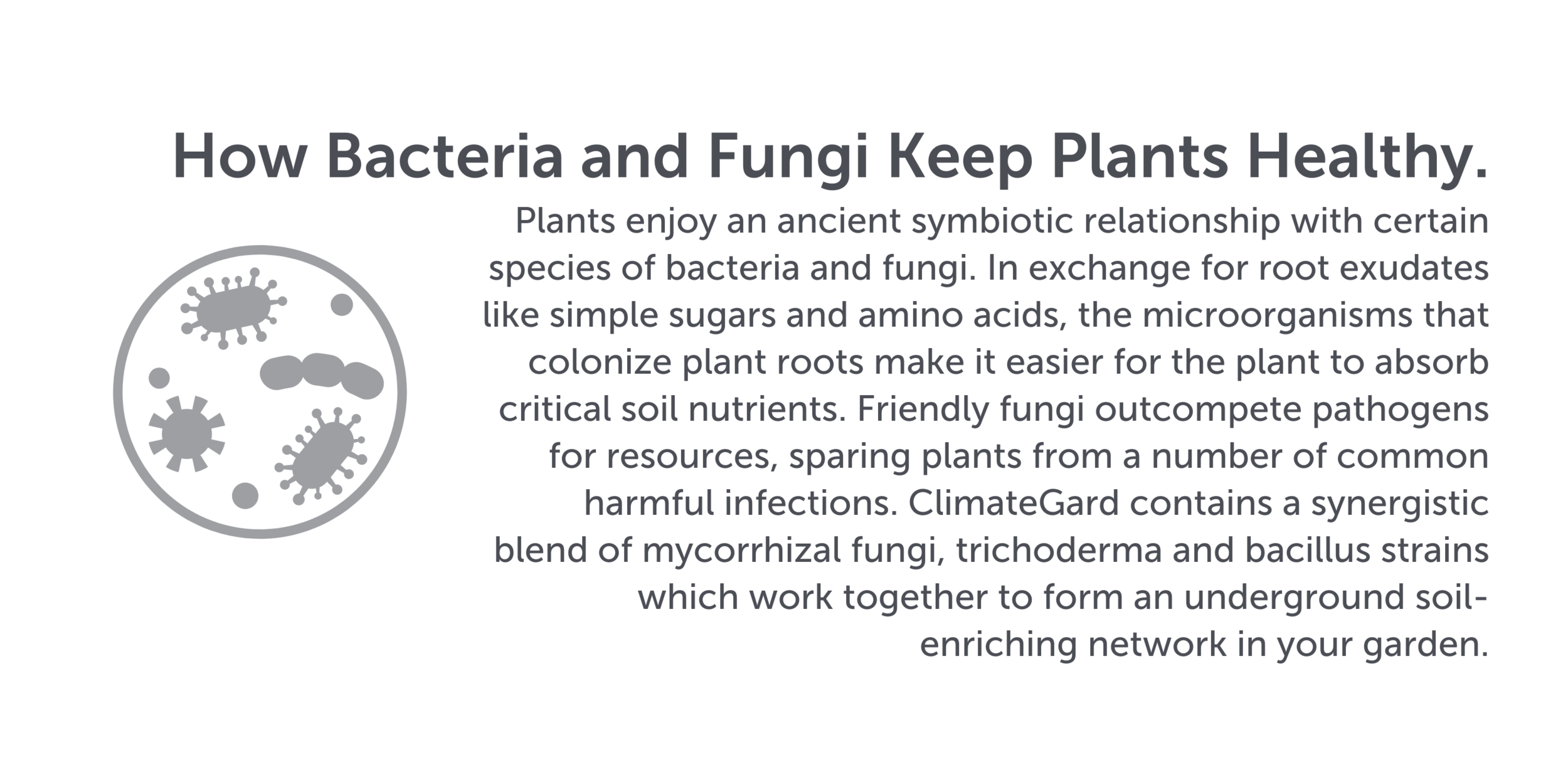 ClimateGard™ uses cutting-edge microbiology and ethically-derived plant nutrition to produce the same results as conventional fertilizers without the negative environmental impacts. Our biodynamic, no-kill formula creates a living soil ecosystem that will continue to flourish long after its last application.
